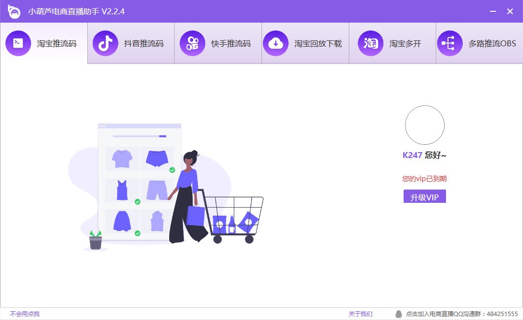 先打开小葫芦电商直播助手,并登录小葫芦账号,选择淘宝推流码。