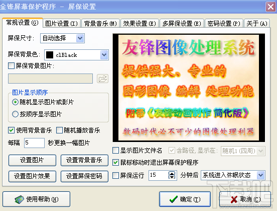 金锋屏幕保护程序可以作为屏幕保护服务器来用,因为您可以任意在该屏幕保护中添加或删除图片、影片、Flash动画等。而且还可随意设置多个背景音乐(支持MP3、MIDI、WAV等常用格式),支持同步显示背景音乐歌词。作为一个屏幕保护程序,其图像间的切换动画效果是很重要的,该软件共有200多种图片切换效果。而且可以随意设置是否禁用某个效果及设置效果速度等。另外,它还具有“多屏保随机启动”功能,可以设置多个不同的屏保被随机启动,并可为其它屏幕保护程序添加背景音乐。