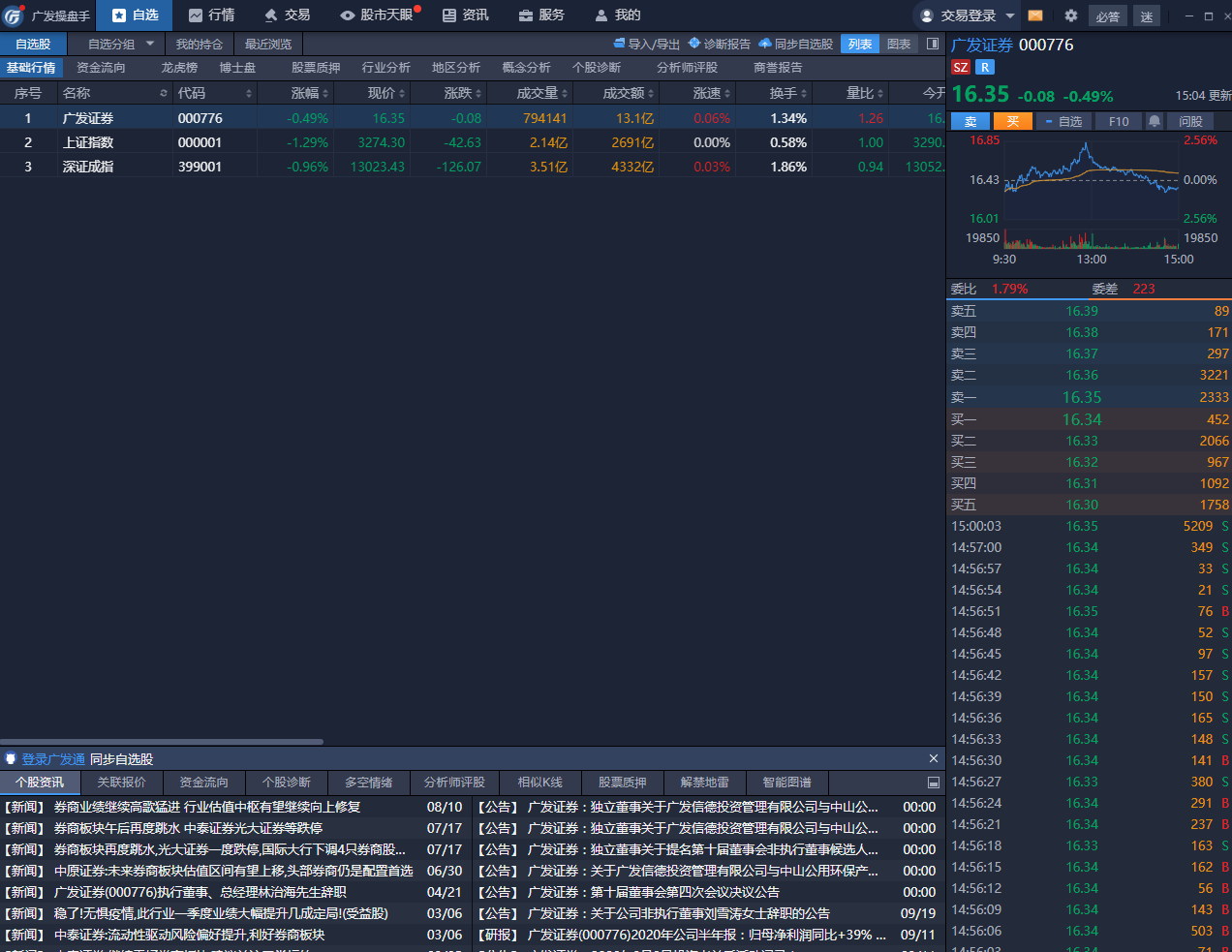 广发操盘于新上线自选股分析