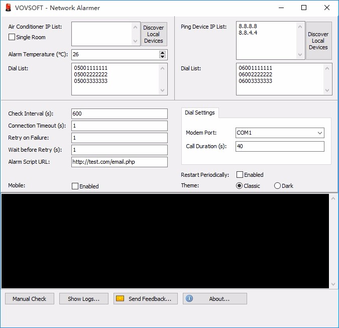 Alarmer是一款非常专业且优秀的网络设备监控软件,可帮助用户快速将网络设备进行监控,非常适合各个网站的站长使用,时刻监控自己的服务器,若您需要监控网络设备,就可以用到这款软件,虽然软件界面为全英文界面,但是总的来说操作还是很简单,当服务器出现过热或者遭受攻击时,可及时发出警报,并发送邮件给站长,从而更好的维护设备,避免设备损坏,支持实时查看监控信息,生成日志文件,可查看具体的操作记录,总之这是一款非常好用的软件,如果您有需要,那就赶快下载体验一下吧!