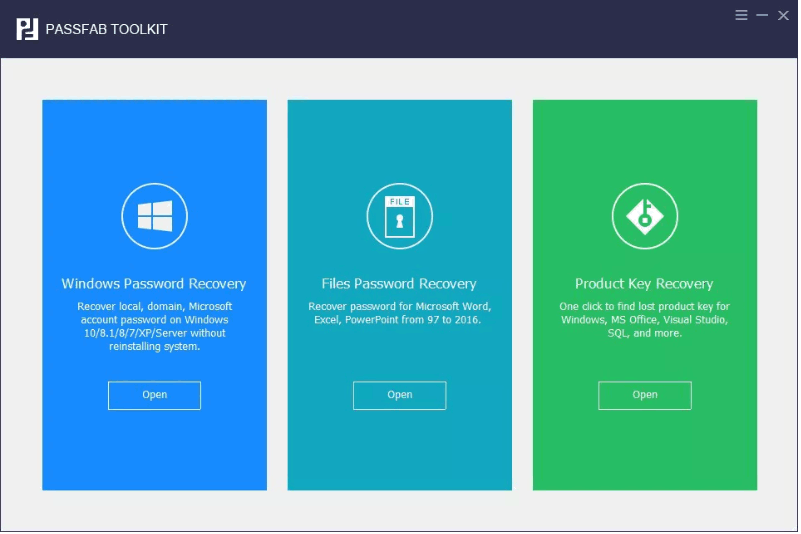 PassFab ToolKit是一款强大的密码恢复工具套装,该工具拥有三种类型的密码恢复功能,用户可以在不需要重装计算机系统的情况下重置计算机的系统密码,通过该软件用户可以轻松恢复Word、PPT、Excel等文档的密码,还可以使用它找回office相关产品的密钥;PassFab ToolKit的使用方式简单,除了重置系统密码比较麻烦之外,通过该软件来恢复文档的密码还是很简单的;软件的兼容性比较好,可以兼容office各版本的软件以及兼容Windows系列各版本的系统;一个多功能的密码恢复软件,需要的朋友欢迎下载。