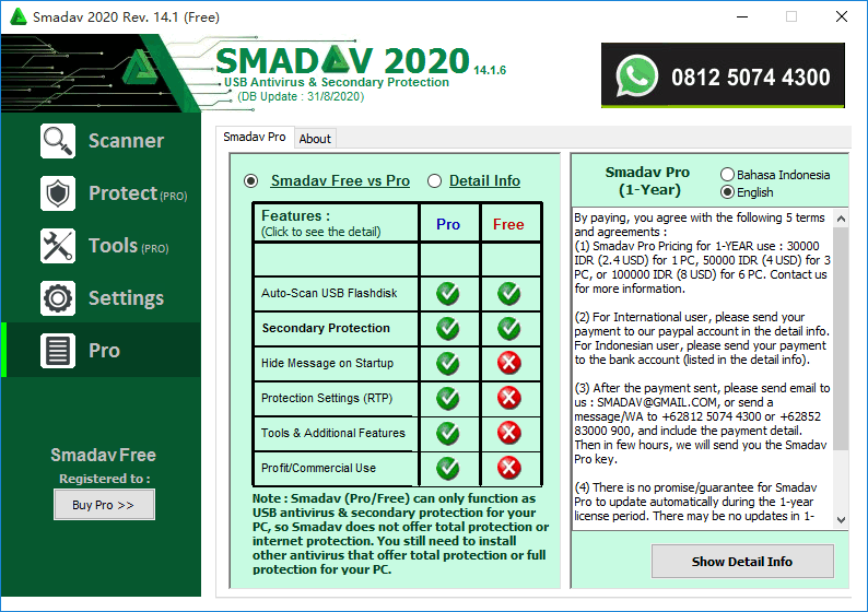 SMADAV是国外知名的病毒查杀软件,该软件用于计算机防护以及USB闪存盘病毒查杀;计算机和USB闪存盘是最容易感染病毒的硬件,因为我们需要在电脑或者U盘中存储各种文件,所以这两个硬件设备感染病毒的风险就非常大;SMADAV属于计算机的附加保护软件,因此它可以与其它的查毒软件所兼容,能共同帮助用户抵御病毒的侵害;软件相对比较稳定,病毒的检测能力强,精准查杀计算机病毒,降低病毒给用户造成的损失;软件拥有近7000多种病毒的检测数据,并且还在不断的更新中,对于计算机病毒的防护,这绝对是一款值得信赖的软件。