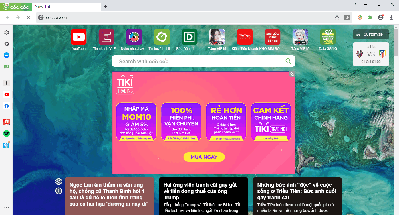 在基于人工智能技术的Coc Coc浏览器的新选项卡上,享受您感兴趣的热门新闻。各种报纸,友好的界面