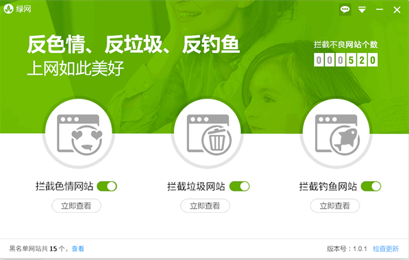 绿网宝贝是一款网络过滤软件,该软件能够帮助用户过滤掉网页中的各种垃圾广告,色情网站以及钓鱼网站等,维护孩子的身心健康;虽说网络的出现让我们获取信息更加便利了,但同时也给我们带来了一些烦恼,特别是家中有小朋友的用户,对于如何把控孩子上网的问题是比较困难的,因为家长无法一直守候在孩子身边,如果孩子在未成熟的年龄过早接触到一些具有危险性的信息,这会给孩子的身心造成一定的创伤;这款绿网宝贝转为儿童上网打造,可以有效避免儿童过早接触色情等垃圾信息,并且家长可以灵活管控,需要的朋友欢迎下载。