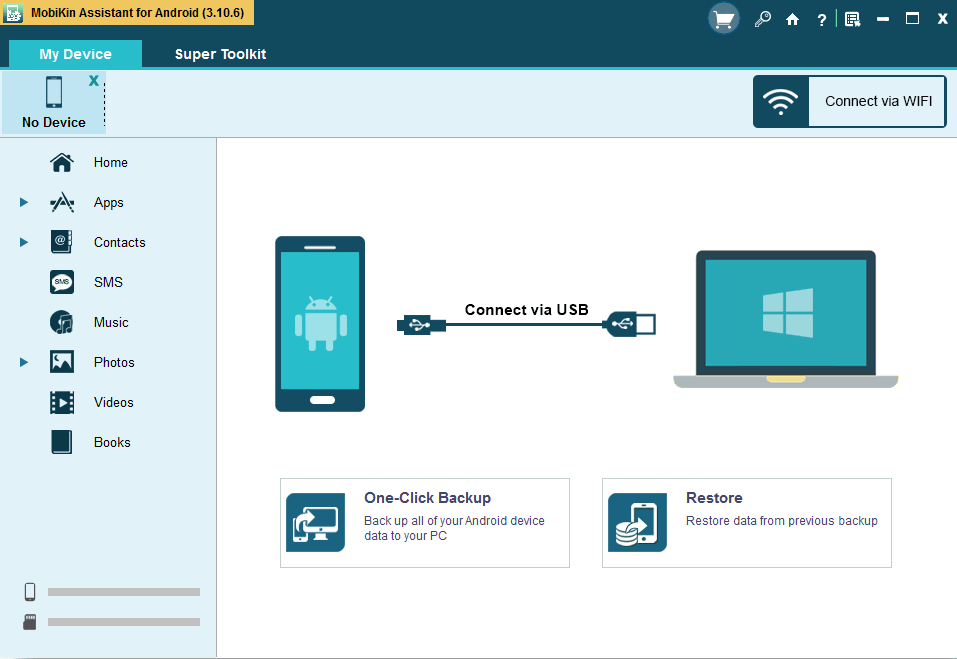 MobiKin Assistant for Android是一款安卓手机数据备份还原工具,该软件可以帮助用户直接通过电脑管理Android设备中的数据;它与各种Android设备型号兼容,它支持电脑中直接卸载不需要的Android应用程序,并可以在设备上导出和导入数据;用户可以通过Wi-Fi或USB数据线将Android设备连接到电脑中,连接成功之后,用户就可以开始备份照片,音乐文件,视频,Android程序等等数据;不过,这款软件不允许用户传输一些特殊的文件类型,例如,它不能为您提供备份书签,应用程序数据包括聊天数据信息等功能。