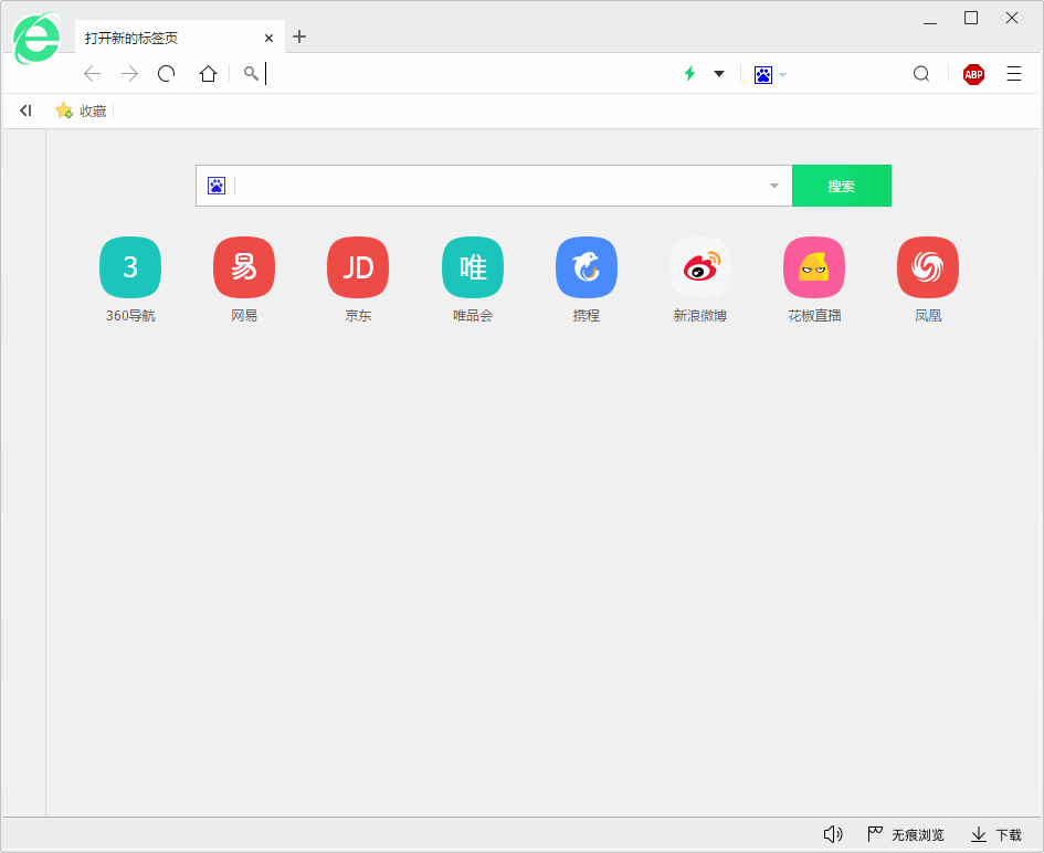 4、这款浏览器的书签添加方式与其它浏览器的不同,在这款浏览器中,用户需要单击“收藏”来添加网站书签。
