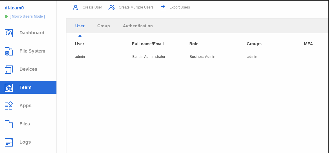 1.转到Morro Cloud Manager中的TEAM页面,然后从顶部选择USER子页面。