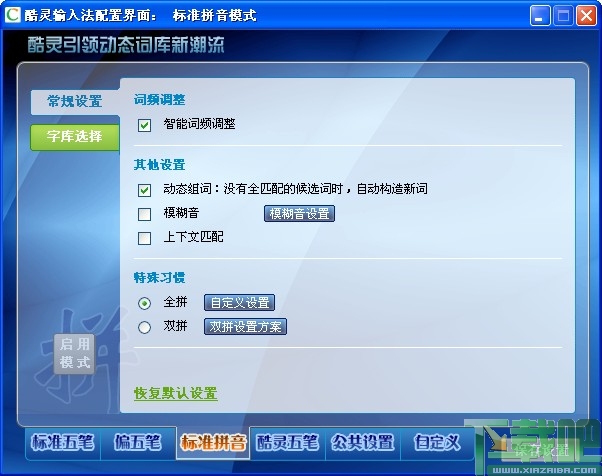 通过广泛的用户行为分析,用户的输入习惯被归纳为标准五笔、偏五笔、标准拼音、酷灵五笔这四种输入模式,每种输入模式都各具特色。