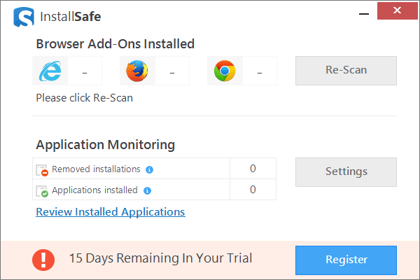 InstallSafe是一款实用的软件安装安全管理工具,该工具的功能可以分为两种,一种是管理浏览器,提升浏览器的速度,另一个是管理软件安装,可以停止不需要的软件安装;当浏览器使用时间久了之后,在浏览器中会产生各种加载项,这些加载项会给浏览器造成负担,久而久之会导致浏览器运行缓慢;InstallSafe作为一款绿色安全的浏览器管理工具,可以轻松帮助用户扫描浏览器中的所有加载项,用户可以自行选择不需要使用的加载项,并通过软件一键删除这些加载项,以实现浏览器高速运行。