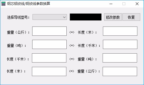 钢芯铝绞线钢绞线参数换算工具是一款非常简单且实用的裸导线、钢绞线重量长度换算工具,可帮助用户快速将钢芯铝绞线钢绞线参数进行换算,支持不同类型的参数换算,包括吨--千米、千米--吨、公斤--米、米--公斤,您可根据实际需要灵活进行选择,使用起来非常方便,操作也非常简单,只需输入相应参数的值,即可自动进行换算,快速且准确的显示出对应的参数值,还可换算不同单位的参数,若您需要更多的导线参数,可添加参数,对其进行修改,欢迎有需要的用户下载体验