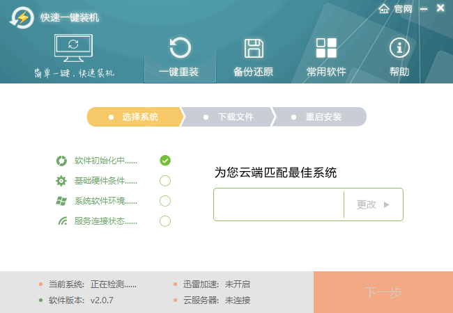 快速一键装机是一款自动计算机系统安装工具,该工具主要为Windows用户提供各个版本的系统安装功能,让用户可以不必进行复杂的设置就能将计算机的系统重新安装;采用U盘安装计算机系统首先需要制作一个U盘启动盘,拷贝系统文件,然后再经历一系列的操作和设置后才能安装系统;这对于大部分用户而言是非常麻烦的,因为并非每位用户时刻都准备有系统盘,所以使用U盘安装的方式并不适用于大众;快速一键装机为大众提供了一个便捷的系统安装方案,用户只需要选择适合的系统,就可以让软件自动下载系统,并在下载后自动进行安装。