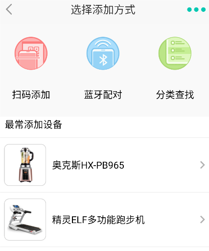 4、设置成功以后,可以选择添加方式【扫码添加】【蓝牙添加】【分类查找】。