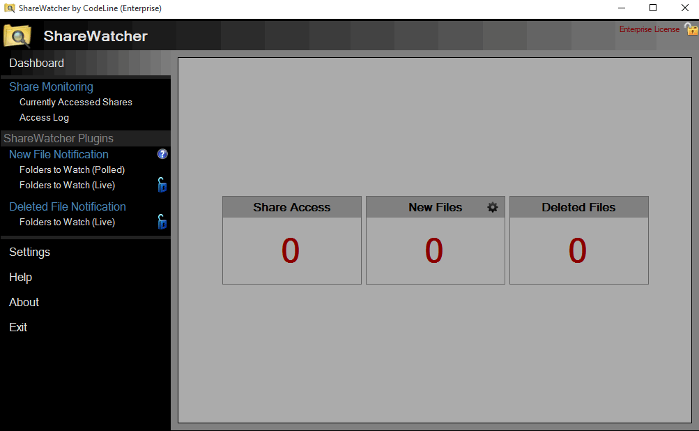 仪表板将有关受监视共享以及任何插件的关键信息汇总在一起,单击计数将带您到相关屏幕。