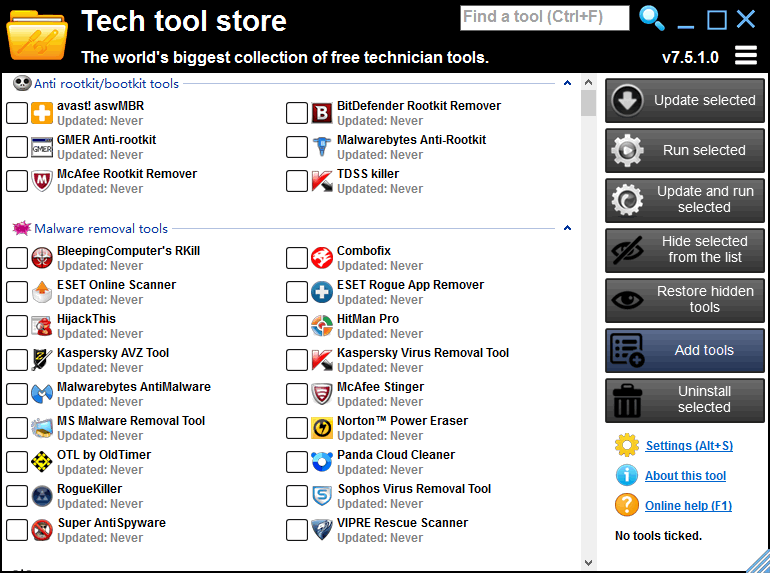 Tech Tool Store是一款实用的技术工具下载和安装软件,该软件中包含有常用的500种免费工具,用户可以根据程序的描述以及名称下载使用;软件的使用方式简单,所提供的工具丰富,如果在软件的列表中没有您需要使用的软件,您可以从第三方将其添加到软件列表中;Tech Tool Store拥有完整的软件管理功能,软件可以直接下载并安装程序,同时也可以一键批量卸载程序;这款软件中所提供的程序丰富,安全绿色,支持关键字搜索和程序分类,让用户可以轻松找到需要使用的功能。