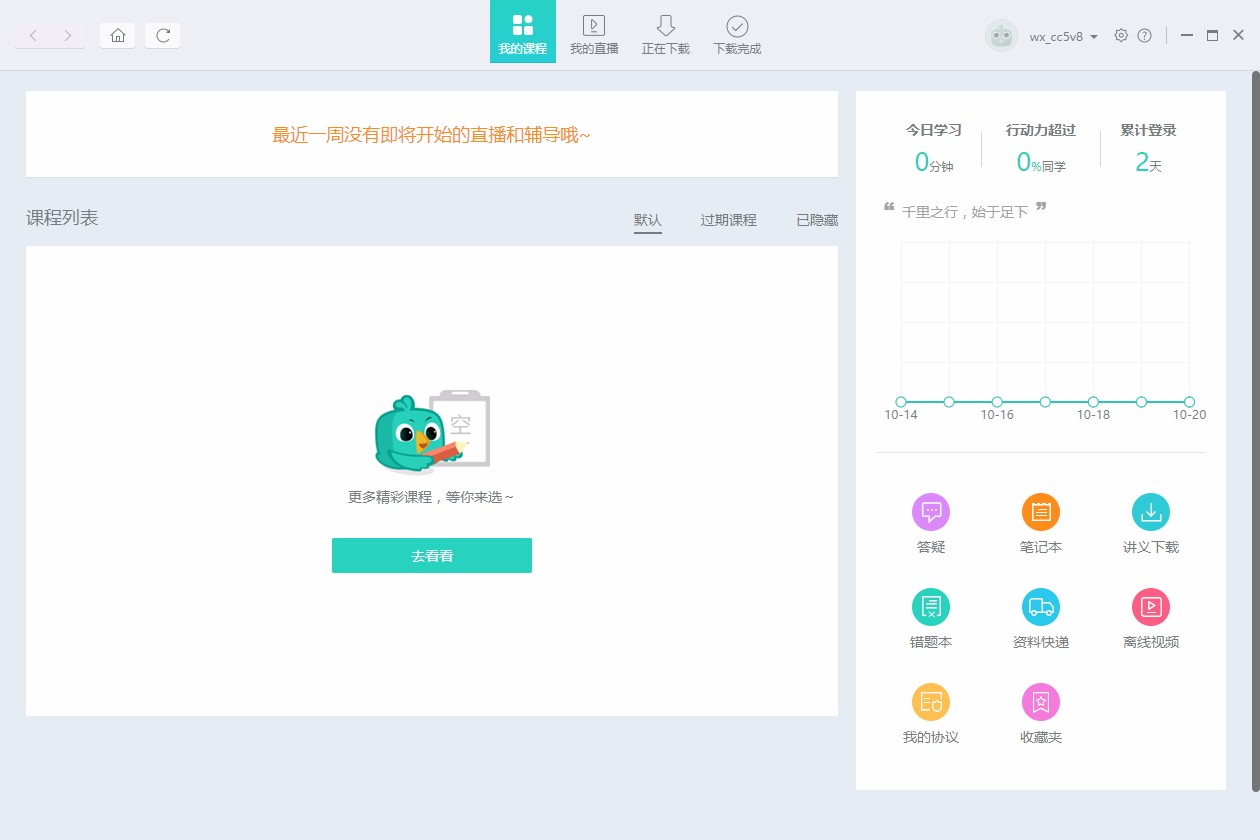 4、点击我的课程,可查看最近一周的直播和辅导