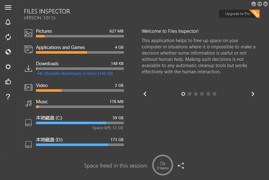 Files Inspector是一款体积轻量、界面友好的磁盘文件分析软件,该软件功能强大、操作便捷,打开软件即可直接对磁盘文件进行扫描,并将扫描结果呈现在软件首页,让用户可以直观的了解文件在磁盘中的占比;Files Inspector除了可以对磁盘文件进行扫描分析之外还可以对磁盘中无用的垃圾文件进行清理,可以最大限度的释放系统磁盘的空间,同时该软件支持将所有已删除的项目文件放在回收站,以免出现操作错误后进行数据找回和恢复;这款软件是专门针对磁盘文件扫描分析而设计研发的软件,可以帮助用户有效维护和整理磁盘文件,非常方便好用。
