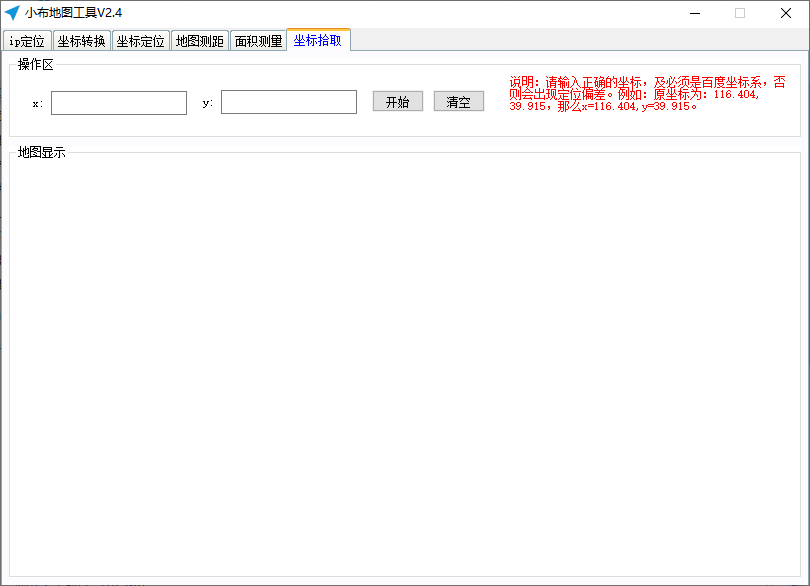 小布地图工具是一款功能功能强大、简单好用的地图定位软工具,支持ip定位、坐标转换、坐标定位、地图测距、面积测量、坐标拾取等功能,该可以帮助用户简单便捷的进行地图定位,可以对地图当前坐标进行切换和修改,可以对地图距离进行测量等操作;小布地图工具支持百度地图定位,利用这个工具能对用户的IP地址进行大致定位,同时该软件可以对用户的IP地址进行扫描并获取电脑IP地址,方便用户进行定位和坐标拾取,可以说这款软件的功能非常强大,值得大家进行下载,感兴趣的用户可以下载体验。