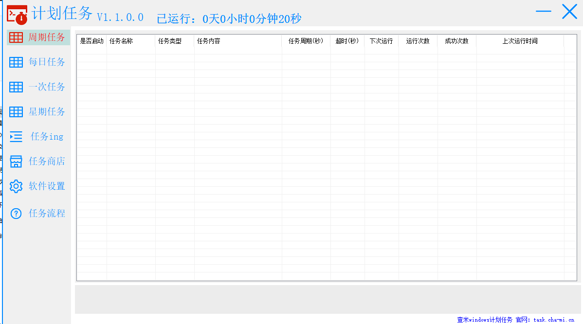 1、查米windows计划任务软件界面干净简洁、简单易用
