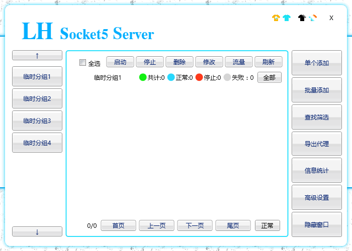 蓝恒Socket5服务器是一款强大的服务器数据管理工具,该工具为用户提供了丰富的数据管理功能以及数据分析功能;这款软件主要是基于Windows系统,拥有简洁直观的用户界面,与其它同类产品相比较,这款软件更加的稳定和简单;该软件为用户提供了一个完美的数据处理解决方案,用户可以轻松进行数据转发,数据调控以及数据安全保障等工作;蓝恒Socket5服务器拥有许多强大的功能,总之能够满足用户的一切服务器数据处理需求,需要的小伙伴欢迎下载体验。