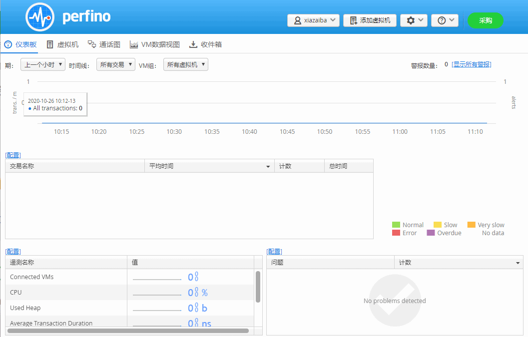 登录后,您会看到一个仪表板,其中在一个屏幕上显示了有关活动和受监视VM的运行状况的重要信息。在仪表板上,您可以通过单击感兴趣的项来深入到更详细的“ VM数据视图”,包括事务名称,问题,迷你图和策略违反饼图的切片。