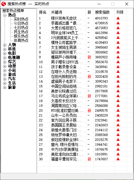 4、提供实时的热点帮点,并且标记搜索指数上升或下降。