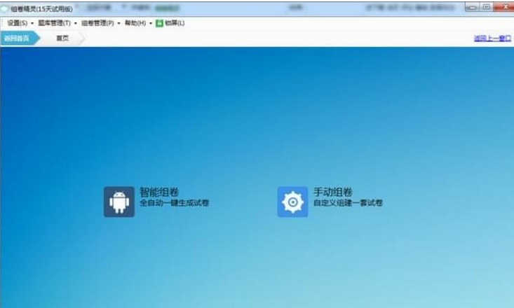 3、完成软件登录注册进入软件操作界面,该界面可以进行智能组卷、手动组卷等操作