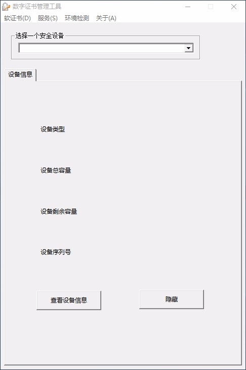 东方新诚信数字证书管理工具是一款非常简单且实用的数字证书管理软件,可帮助用户快速对数字证书进行管理,数字证书中包含了公开密钥拥有者信息、公开密钥、签发者信息、有效期以及一些扩展信息的数字文件,其中的公钥信息与用户身份信息进行了绑定,因此可以用数字证书确定用户的身份,有效避免网上欺诈等行为,为电子商务的开展提供了更加安全的网络环境,而这款软件可帮助我们对数字证书进行管理,您可以选择一个安全设备,并可查看该设备的信息,支持环境检测,欢迎有需要的用户下载体验