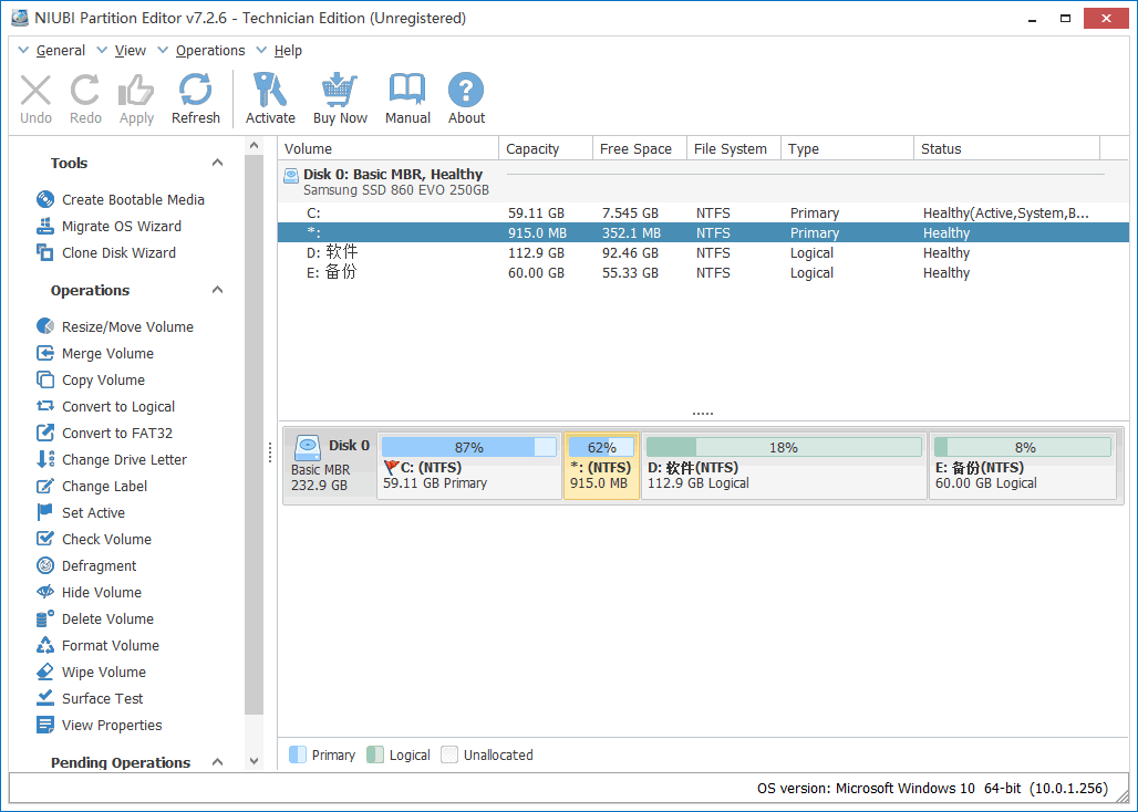 NIUBI Partition Editor是一款功能强大的磁盘分区编辑工具,该工具拥有丰富的磁盘分区管理功能,可以对分区进行克隆,调整大小,转换分区等等操作;当您的磁盘分区不够用时,您可以使用这款工具将空闲的分区转移到需要调整的磁盘分区中,以扩充分区的内存;NIUBI Partition Editor拥有完全的磁盘管理功能,您需要用到的磁盘功能都可以轻松通过它来实现,软件在使用上并不复杂,不过对于国内用户来说,唯一的障碍就是软件的界面语言不支持中文,这让许多用户望而却步,不过好在软件官网中提供详细的图文教程和视频教程,您可以按照教程进行操作也是十分简单的;需要的小伙伴欢迎下载体验。