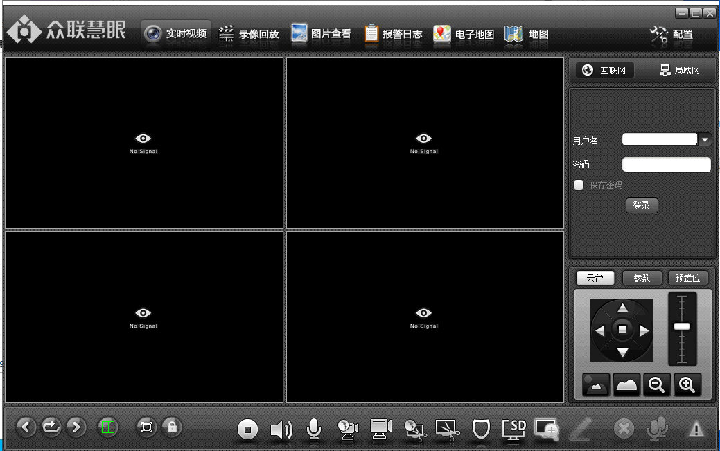 10、软件下方是软件提供的一些监控基本控制功能,可控制录像,截图,播音等。