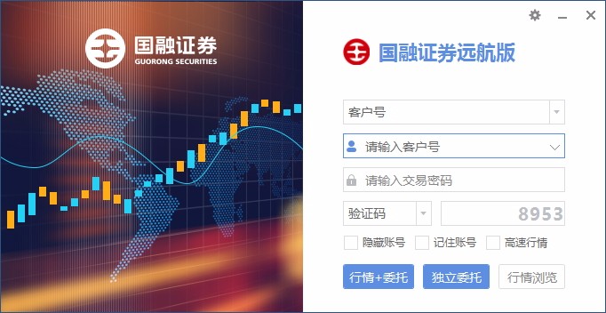 1、打开软件,提示登录,输入客户号、交易密码、验证码进行登录