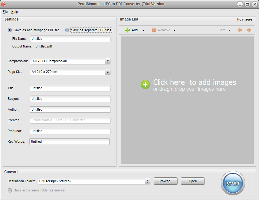PearlMountain JPG to PDF Converter是一款图像转PDF的工具,该工具可以帮助用户将常见的图像转换成PDF文档,比如BMP,TIF,PNG和GIF等格式的图像;软件非常易于使用,用户可以进行批量的图片转换,只需将要转换的图片全部保存到一个文件夹中,然后再将该文件夹哀添加到软件中就可以开始进行转换;在转换之前,软件还为用户提供了一些信息编辑框,这些信息并非强制填写,如果您需要完善PDF的信息就可以按照提示在对应的输入框中填写相关的信息;PearlMountain JPG to PDF Converter的转换效率很高,很适合用户进行大批量的图片转换。