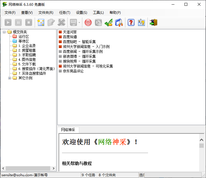 网络神采是一款体积轻量、简单实用的网页数据采集软件,该软件可以帮助用户进行简单便捷的数据采集,通过该软件用户可以快速精准的采集各个行业的数据,其中包括企业名录、房屋租售、求职招聘、图书信息、文件下载、搜索插件等信息;网络神采功能强大、方便实用,软件支持网页采集数据进行可视化浏览、网页跳转等功能,可以帮助用户简单有效的进行数据采集,该软件绿色安全、免费开源,支持各种数据智能采集,非常适合各个行业的商家进行使用,可以帮助商户精准采集数据,方便客户寻找、扩展销售渠道。