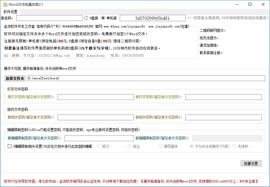 也可对多个Word文件随时修改密码