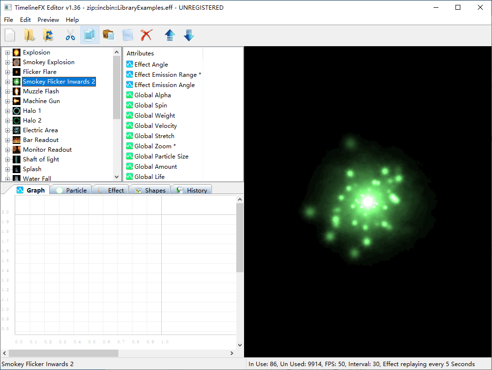 TimelineFX Editor是一款专业的粒子特效制作工具,您可以使用该工具制作火花,闪电和其它类型的粒子特效;这款工具在游戏设计或者三维动画设计场景中比较实用,它可以轻松辅助用户制作适合任何场景的粒子效果,用户可以将这些效果添加到动画场景或者游戏场景中,以增加游戏和动画场景的真实度;TimelineFX Editor兼容多种文件格式,用户能够将特效文件当成静态的动画输出为png图像;这款软件灵活好用,您可以根据自己的创意制作出各种精美的特效;总之它会在您的动画项目或者游戏项目中起到跟大的帮助,需要的小火伴欢迎下载体验。
