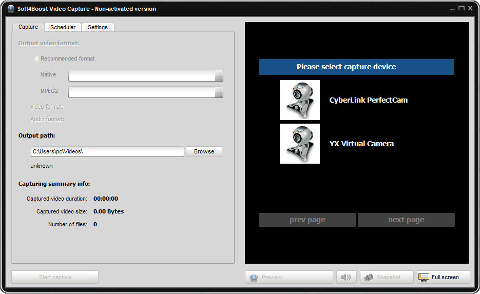 Soft4Boost Video Capture是一款非常强大专业的视频捕捉软件,该软件可以进行摄像头视频捕捉,可以将捕捉的视频上传到电脑设备上进行播放显示,同时该软件支持视频文件生成、视频剪辑和裁剪等功能,是一款功能非常丰富好用的视频捕捉工具;用户可以通过Soft4Boost Video Capture这款软件将各种录像视频设备中捕捉到的视频上传到电脑中进行视频文件生成,方便用户获取各种设备中的视频,方便用户对视频进行保存和编辑,同时该软件还支持视频文件输出模式自定义设置,让用户可以对捕捉的视频进行各种编辑处理。