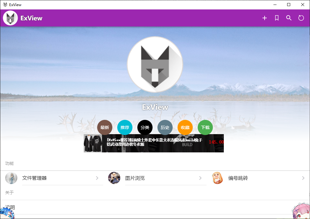 ExView是一款功能强大、方便实用的漫画阅读软件,该软件是一款浏览器形式的资源浏览平台,本身不会提供任务浏览资源和资源上传分享等功能,只为用户提供网站官方的资源进行搜索,帮助用户快速便捷的进行官方资源订阅,软件本身不会缓存任何版权信息于服务器中,是一款非常绿色安全、简单易用的漫画阅读软件;ExView支持漫画、视频、小说等各种资源搜索和下载,其资源都来自相关官方网站,用户可以轻松进行正版资源浏览阅读和下载,同时可以该软件对下载资源进行管理和浏览记录保存,非常方便好用。