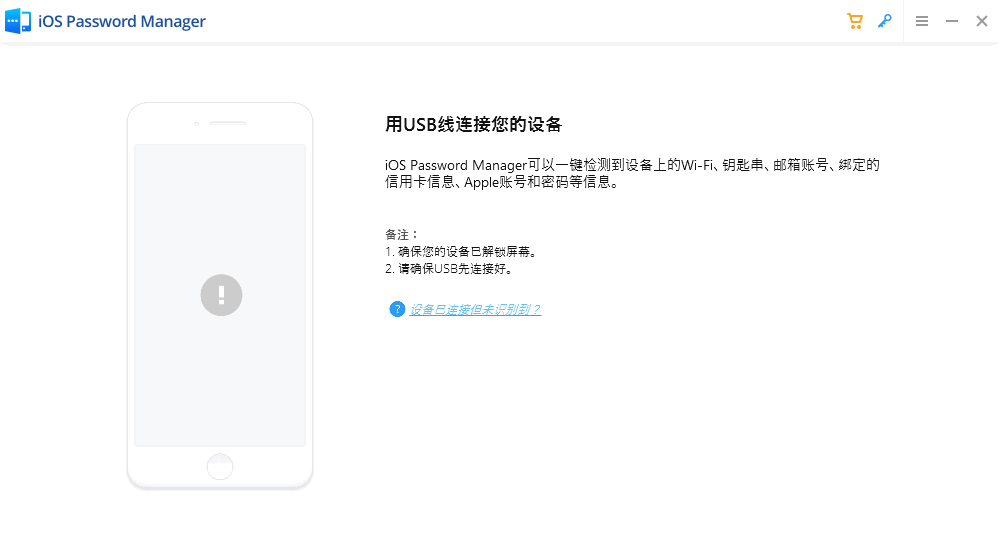 将Apple设备连接到已下载并安装iOS密码管理器的计算机。运行此程序,然后继续。有时您可能需要安装驱动程序。