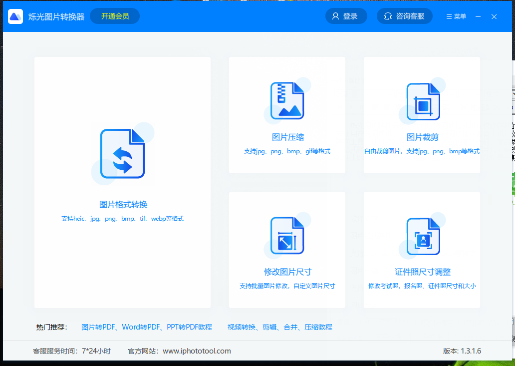 1、完成软件安装双击软件进入软件图片转换界面,该界面可以对图片格式转换、剪切、压缩、尺寸调整等进行设置