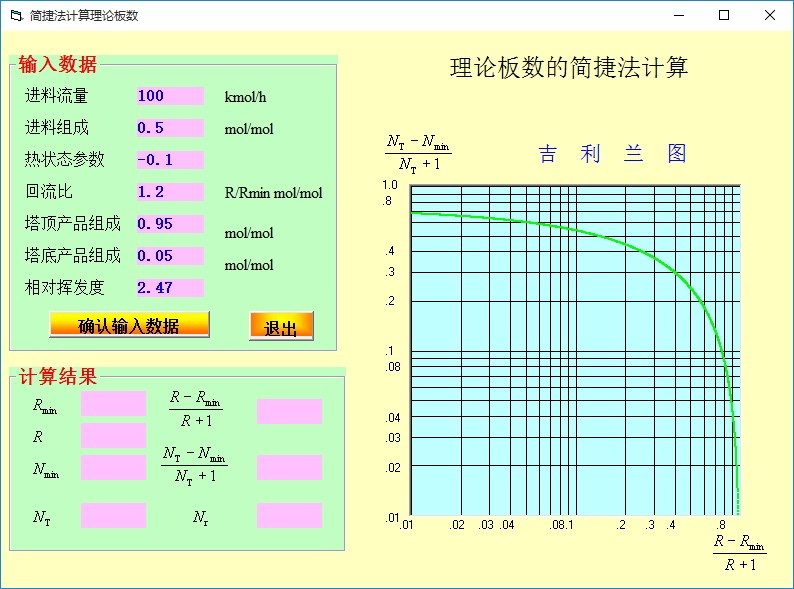 简捷法计算理论板数工具是一款非常简单且实用的理论板数计算软件,顾名思义,可帮助用户快速将理论板数进行计算,与大多计算器一样,软件的计算操作十分简单,只需输入计算所需数据,即可自动进行计算,提供了计算所需的所有参数,在每个参数后输入对应的数据即可,且自带单位,无需手动输入单位,使用起来非常方便,通过一种软件独有的简捷算法,快速且准确的进行计算,计算结果集中显示在软件界面,直观进行查看,总之这是一款非常好用的软件,如果您有需要,那就赶快下载体验一下吧!