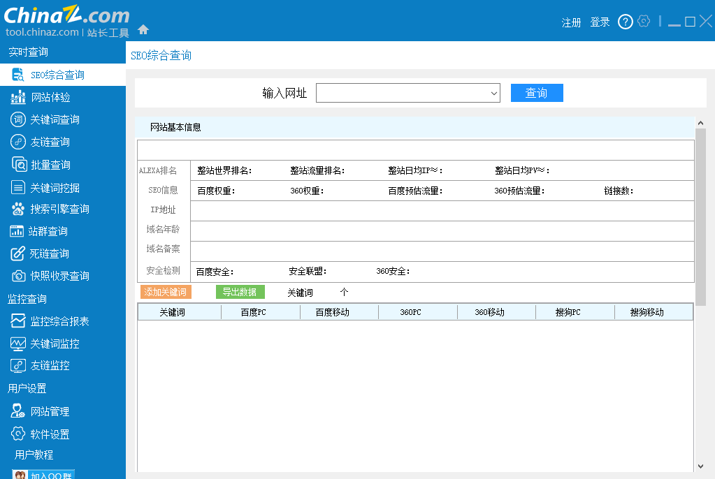 站长工具客户端是站长之家推出的一款站长工具集合软件,该工具中包含了丰富的实用工具,可以帮助站站主进行SEO的综合查询,关键词查询,站群查询以及快照收录查询等等;通过这款软件,您可以对自己的计算机进行体检优化,让用户能够对自己网站状况了如执掌;站长工具客户端功能十分强大,总共包含了十三个功能,可以解决网站运行人员很多的问题,帮助用户提升网站排名;软件还提供了网站管理功能,通过它您将会更加高效的管理您的网站,需要的朋友欢迎在本站下载体验。