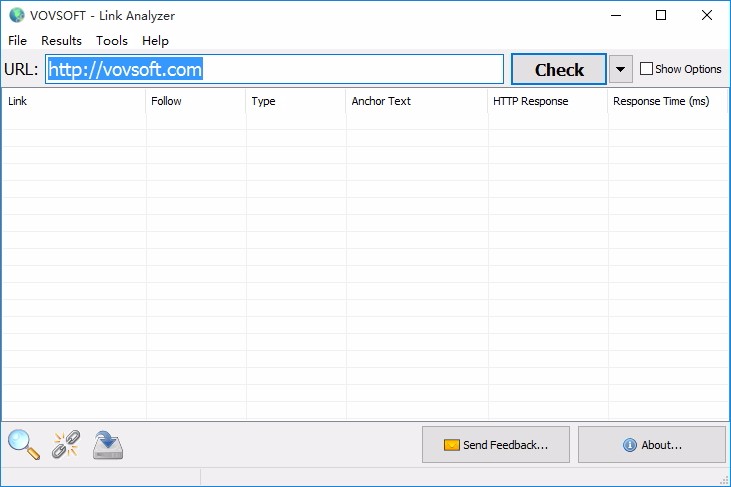 Analyzer是一款非常专业且优秀的超链检查工具,顾名思义,可帮助用户快速检查超链接,软件界面虽然为全英文界面,但是一点也不影响简单的操作,只需输入需要检查的网址,一键即可进行超链接检查,快速分析网址并进行检查,能够高效地爬网小型和超大型网站,能将现场数据进行收集,并将内部和外部链接进行区分,值得一提的是,软件还支持查找断开的链接,将指定网址中断开的链接进行显示,总而言之这是一款非常好用的软件,如果您有需要,那就赶快下载体验一下吧!
