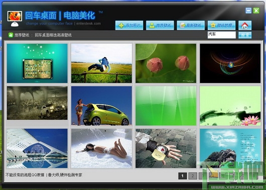 回车桌面美化大师是一款桌面背景美化软件,可以用来快捷、方便的设置桌面壁纸:除提供平铺、拉伸、居中的设置壁纸模式,更首创自动设置壁纸功能,任何照片图片都可以设置为最合适的桌面背景,可设置每天电脑启动,随机自动更换你选择的壁纸。 海量的桌面壁纸库供你选择:100000万张高清桌面壁纸供选择,每日都更新,每日都推荐网友最喜欢的壁纸,会员可以下载自己在回车桌面收藏的壁纸。保护个人隐私,实时隐藏(显示)桌面图标功能,让你的桌面干干净净,保护你的个人隐私,方便快捷的个人上网专用书签设置。