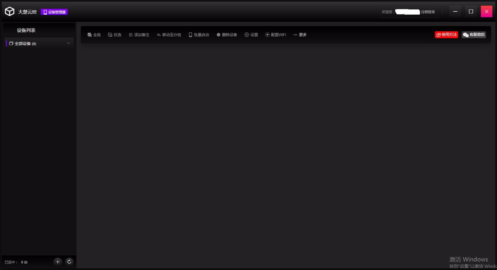 大楚云控是一款非常专业且优秀的云手机控制软件,可帮助用户快速将手机设备进行控制,可一次性控制多台手机设备,同时监控多台手机设备的操作,实时查看在手机上进行的所有操作,使用起来非常方便,操作也非常简单,只需将手机设备通过USB连接到电脑,即可在软件界面查看所有设备的信息,可将这些设备进行分组,分组进行管理,也便于您通过分组快速找到对应的手机设备,可对连接到电脑的手机设备进行一系列的操作,如添加备注、批量启动等,欢迎有需要的用户下载体验
