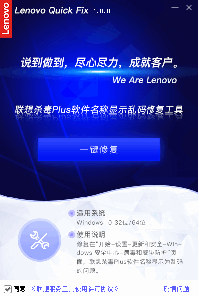 1、帮助用户用户修复联想杀毒Plus软件名称显示乱码的问题。