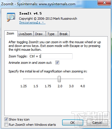 ZoomIt是一款非常实用的投影演示辅助工具。ZoomIt源自Sysinternals公司,后来此公司被微软收购,因此,有些网友也称它为微软放大镜。只有一个exe文件、完全免费、易于使用。通过快捷键可以很方便地调用三项功能: 屏幕放大、屏幕注释、定时提醒。