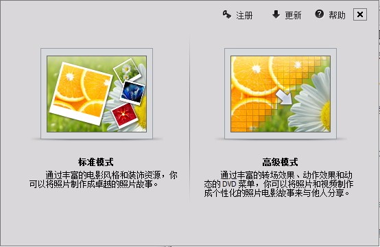 Wondershare DVD Slideshow Builder Deluxe带有标准模式和高级模式,可以满足您的幻灯片编辑需求。如果要添加一些视频剪辑并使用更多种样式包,请选择“高级”模式启动它。