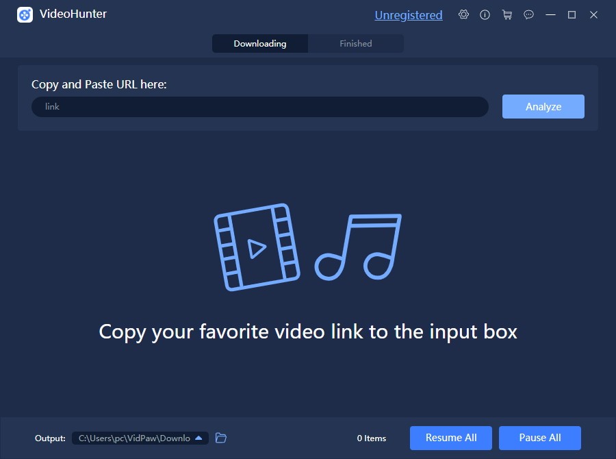 如果你是音乐的忠实粉丝,VideoHunter也可以帮你把音乐门户音乐视频下载成音频和视频文件,就像小菜一碟一样简单。你需要的是粘贴链接并下载音乐。