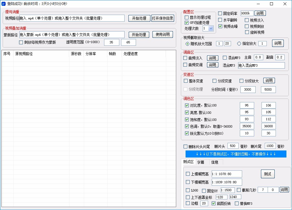 支持叠加消重,可通过叠加消重的方式处理视频文件