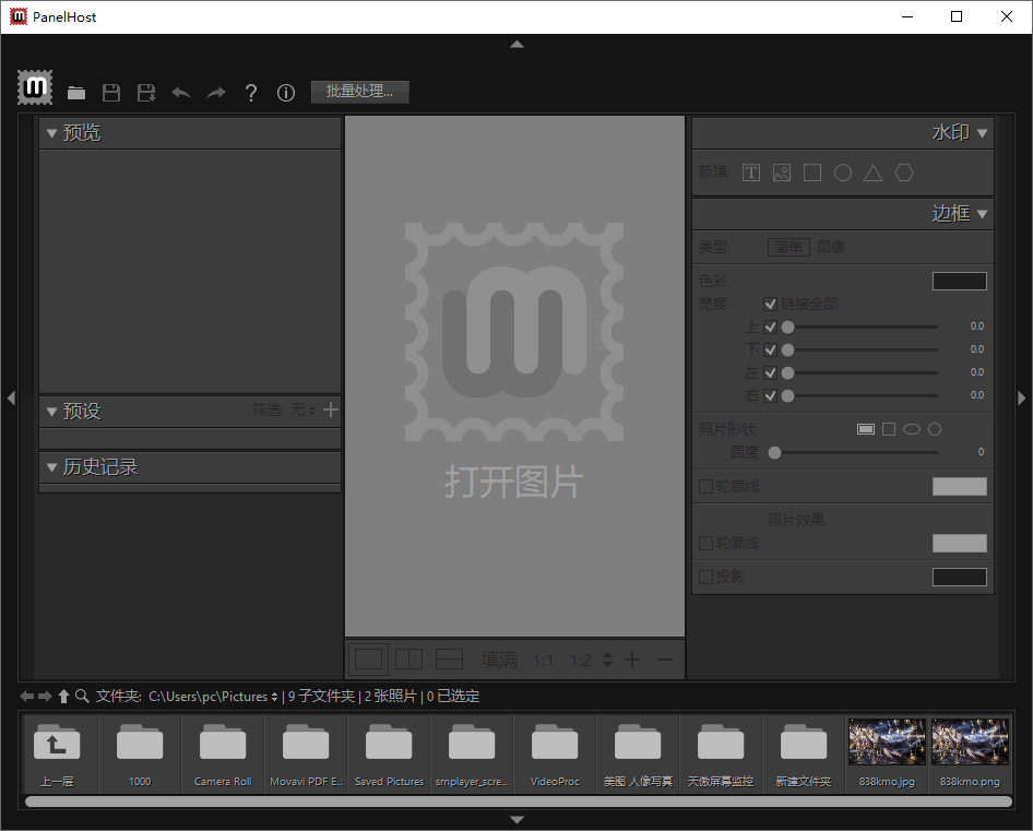 9、软件支持批量添加水印,当需要为大量的图片添加水印时,您可以点击“批量处理”选项。