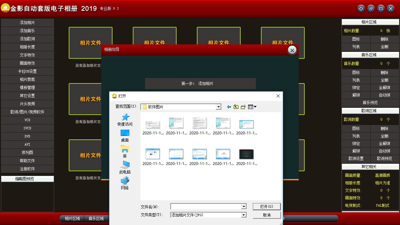 1、金影自动套版电子相册是制作高清电子相册的软件,支持1920×1080高清相册尺寸